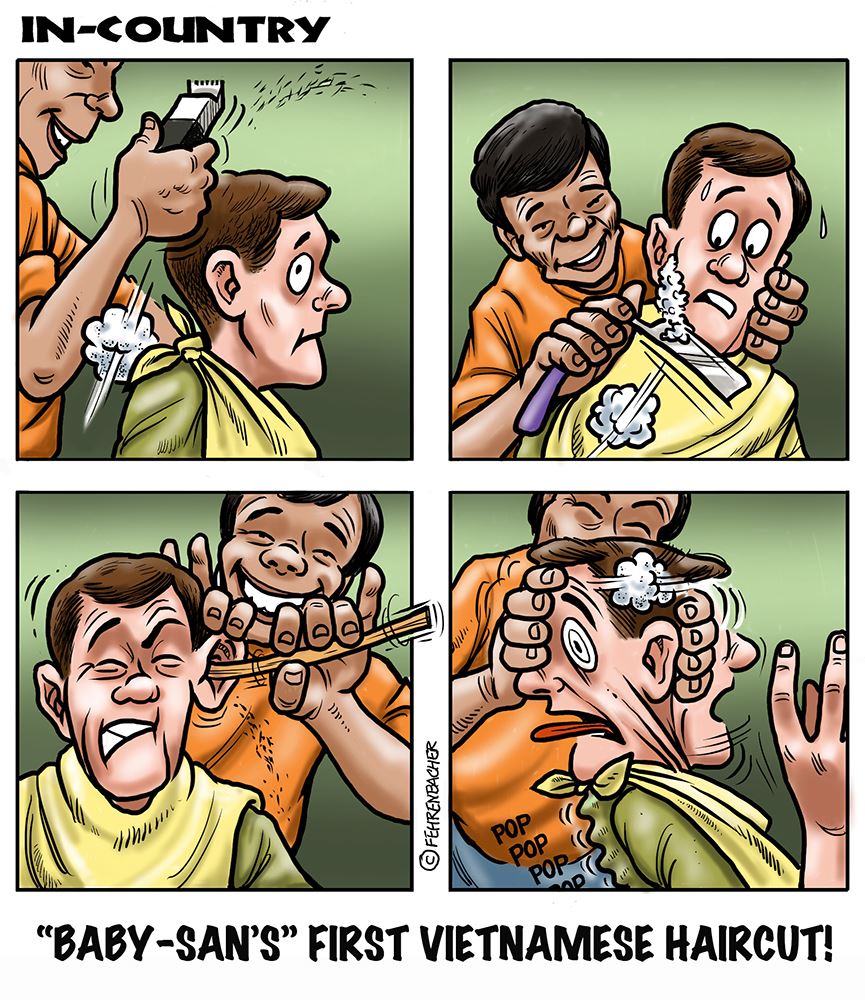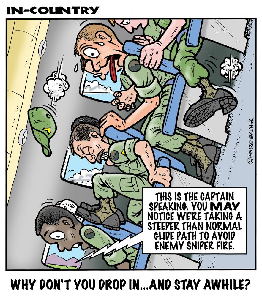 Phil enlisted in the Army in 1965 where he served for years in Vietnam. He became a graphic designer and has worked for the state of Oregon for 26 years. He retired in 2003 and started the Cartoon "In-Country". The cartoons reflect his experiences during his tour of duty in South Vietnam.
